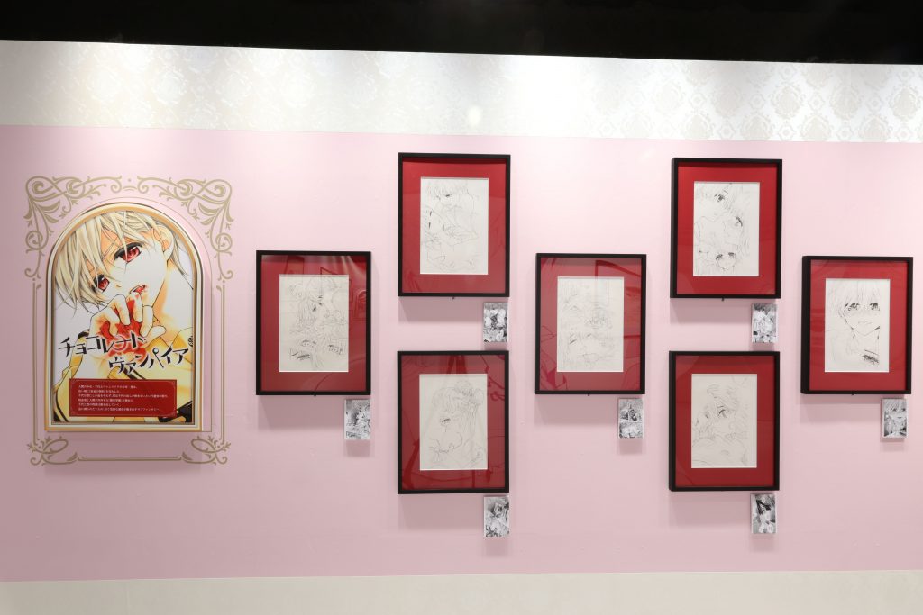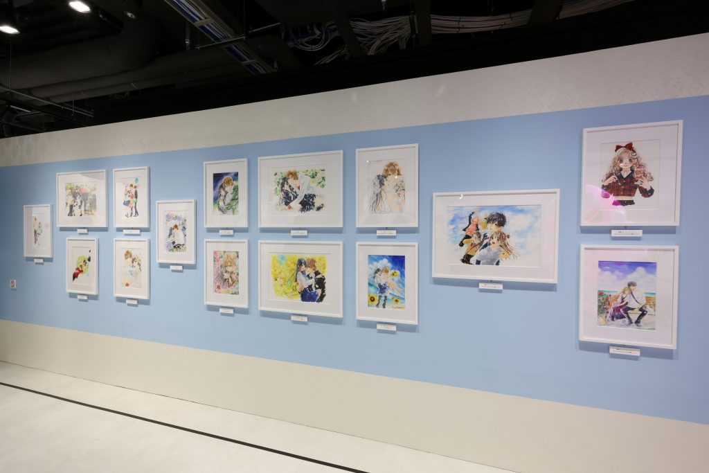 会場には、水瀬藍氏の『青春ヘビーローテーション』『東京§神狼』、くまがい杏子の『ハチミツにはつこい』『チョコレート・ヴァンパイア』など、代表作からセレクトした生原画を100点以上展示。
